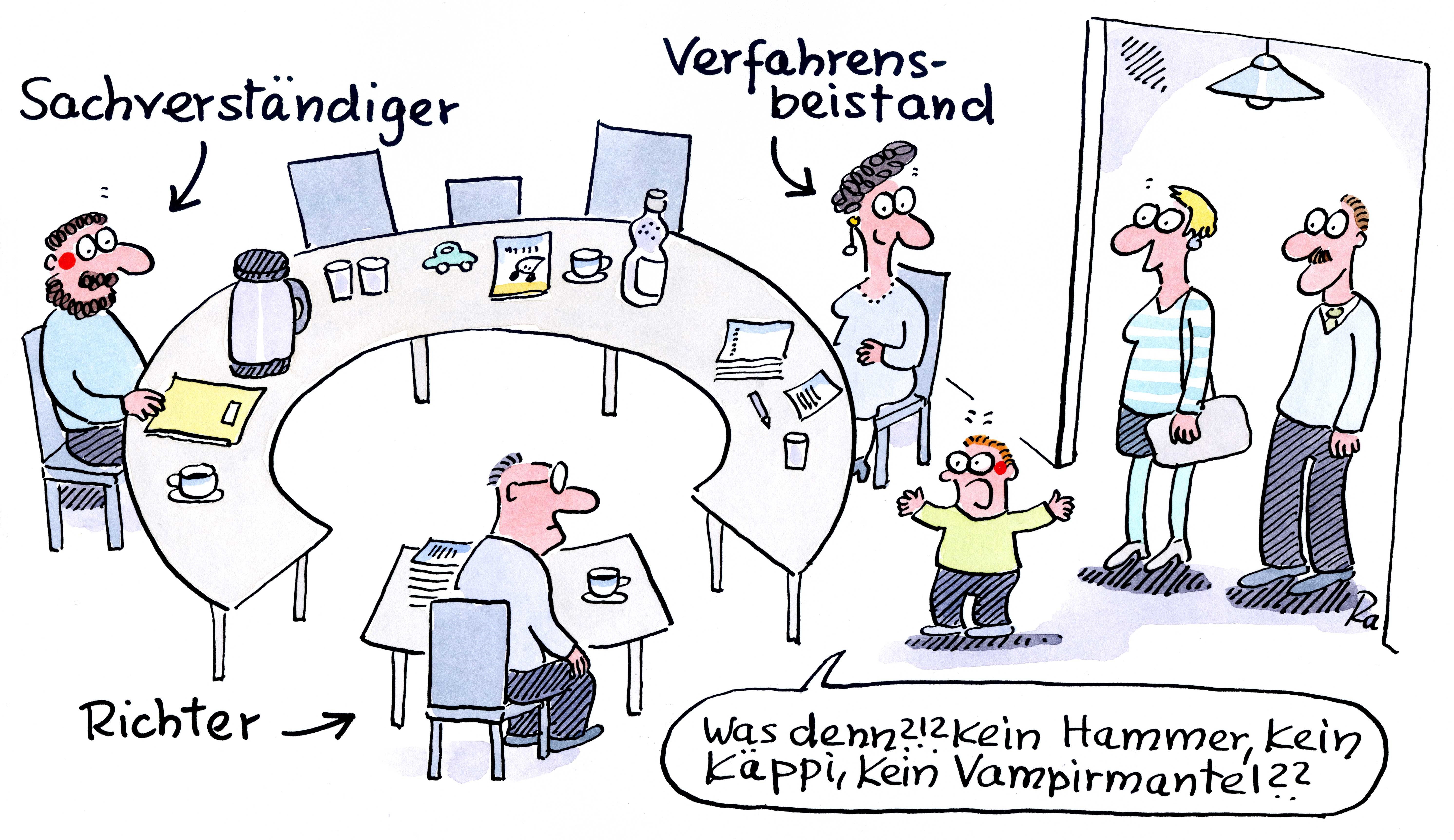 In Sor­ge- und Um­gangs­ver­fah­ren be­steht kein An­walts­zwang, al­ler­dings kön­nen Sie sich von ei­ner Rechts­an­wäl­tin oder ei­nem Rechts­an­walt im Ver­fah­ren un­ter­stüt­zen las­sen. Das Ge­richt kann für Ihr Kind  ei­ne Ver­fah­rens­bei­stän­din oder einen Ver­fah­rens­bei­stand ein­set­zen, wenn dies zur Wahr­neh­mung der In­ter­es­sen Ih­res Kin­des er­for­der­lich ist. Das Ju­gend­amt kann die Fa­mi­lie nicht nur im Vor­feld ei­nes Ge­richts­ver­fah­rens be­ra­ten und un­ter­stüt­zen, son­dern wirkt auch in Sor­ge- und Um­gangs­ver­fah­ren mit und bringt sei­ne Fach­kennt­nis­se zur Lö­sung des Kon­flik­tes ein. Zur Klä­rung ein­zel­ner strit­ti­ger Fra­gen, et­wa zur Er­zie­hungs­fä­hig­keit ei­nes El­tern­teils, kann das Fa­mi­li­en­ge­richt au­ßer­dem ein Sach­ver­stän­di­gen­gut­ach­ten ein­ho­len.